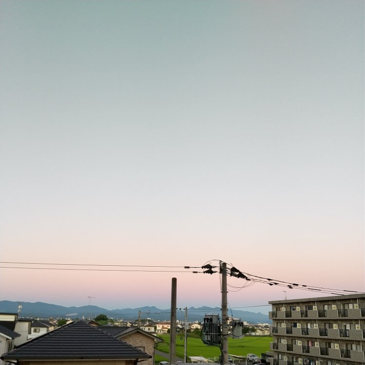 朝日は向こうの山から来て、山は横に長くて淡くて、綺麗だったな。